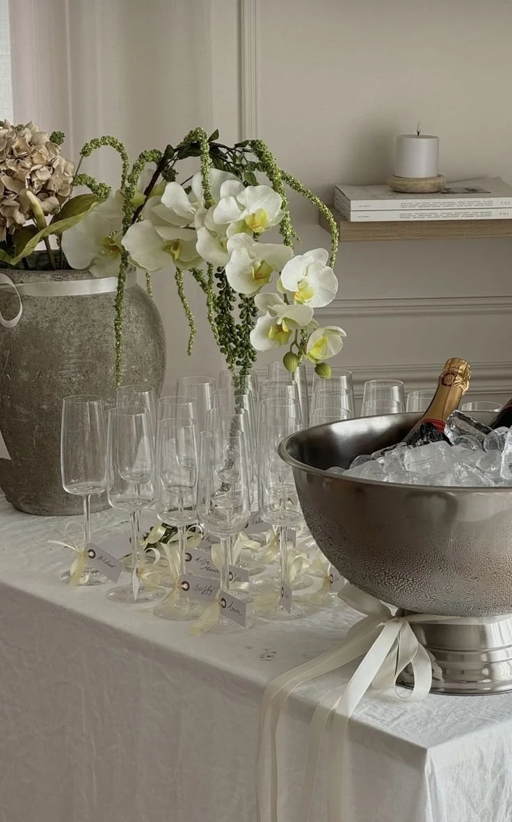 Ud fra jeres stil og ønsker, sammensætter vi bud på dekoration og pynt, så det skaber en visuel helhed for jeres bryllup.